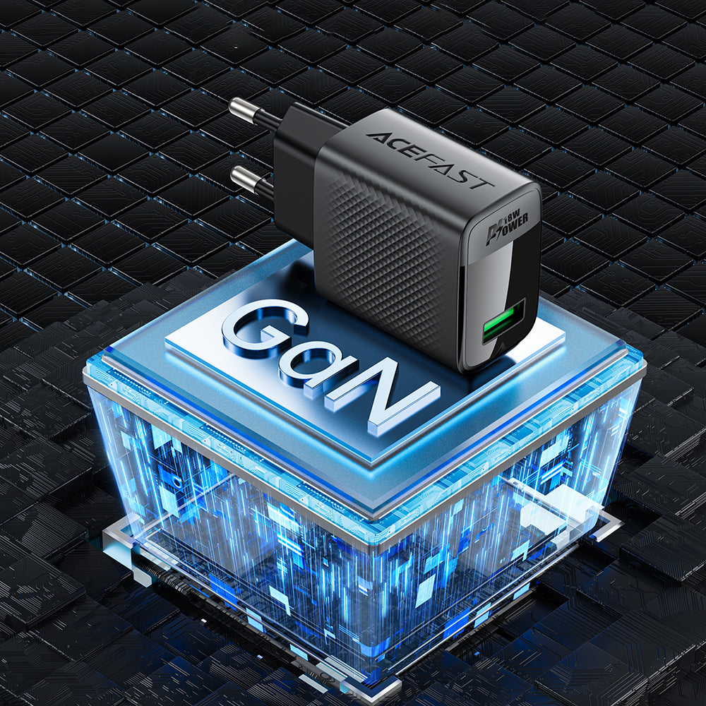 The GaN technology this compact charger features ensures a quick and safe charging of your devices.