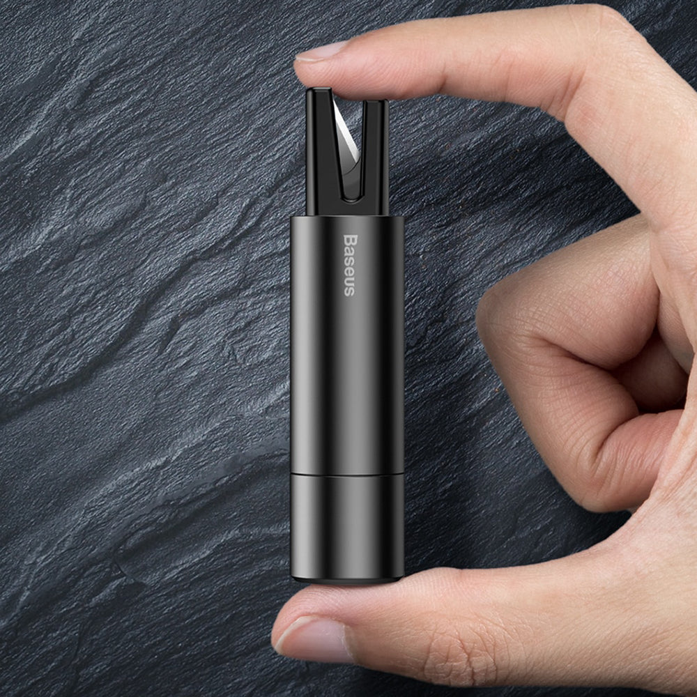 • Inside the gadget, there is an ultra-sharp blade incorporated for quickly cutting safety belts in case of an accident.
