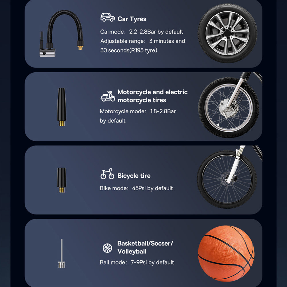 • Compatibility: cars, motorcycles, bicycles, basketballs.