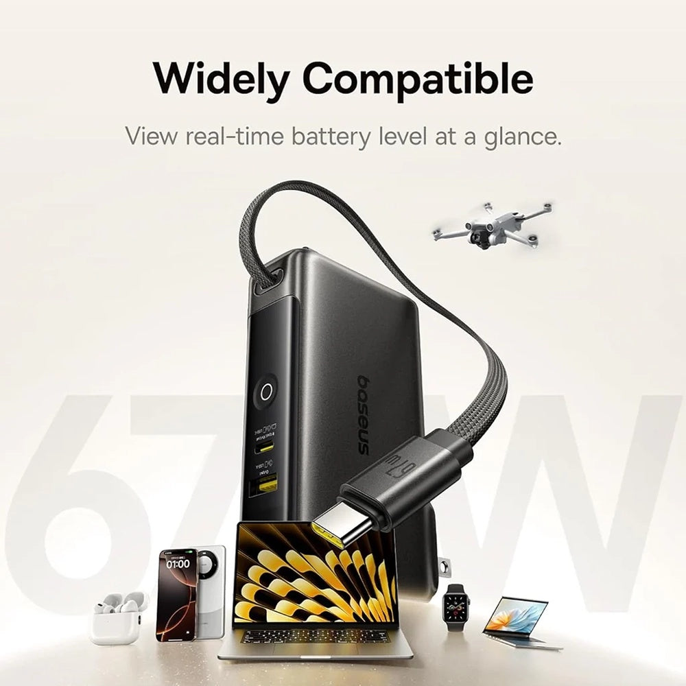 Baseus Nomos NT11 Omni US External Battery, 10000mAh, 67W, QC + PD, 1 x USB-A - 2 x USB-C, Black P10078807123-00