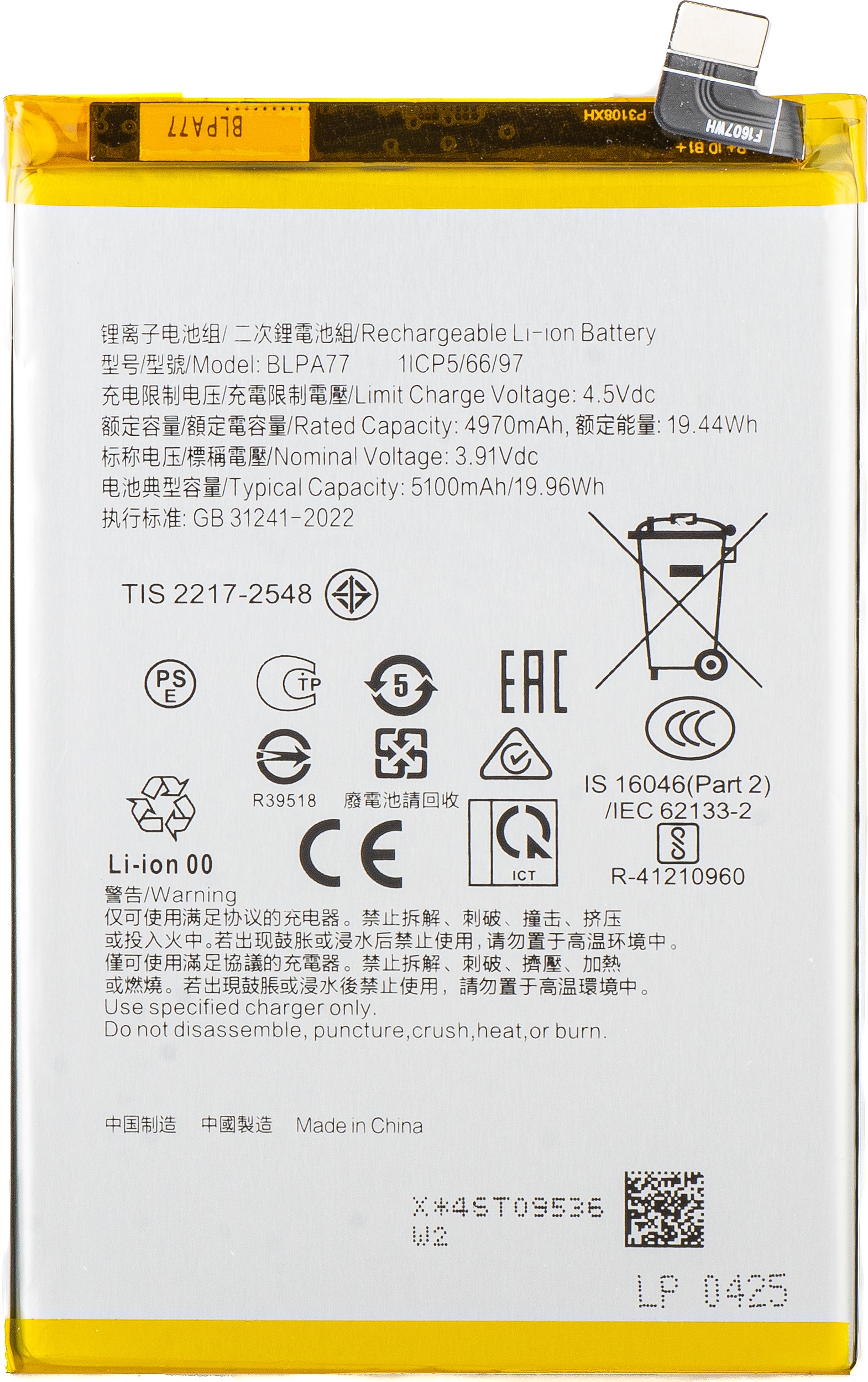 Battery for Oppo A40M / A40 / A80 / A3x 5G / A3x 4G, BLPA77