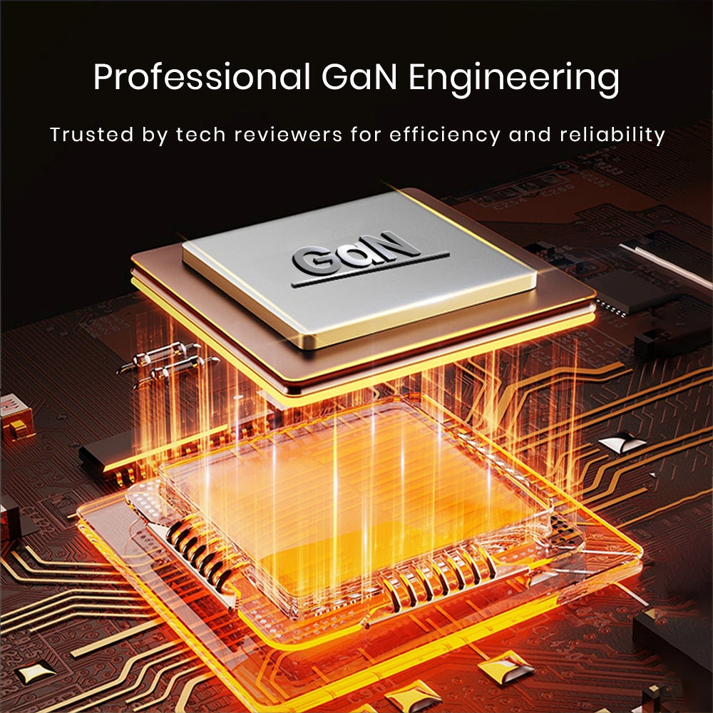 • Why choose this charger? Because it is more compact, safer, and more efficient. Equipped with GaN technology, it features protections against overheating, overcharging, and short-circuiting.