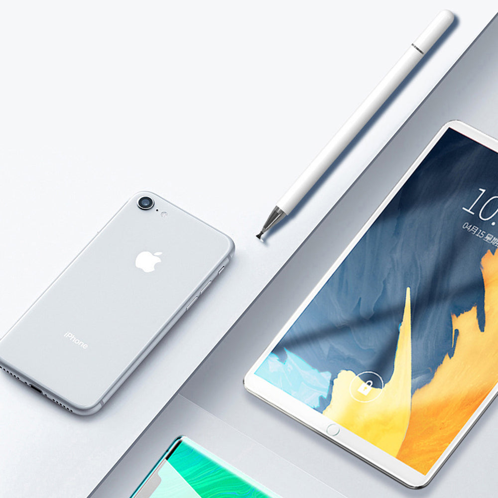 Explore your artistic side! Use the new stylus pen from Techsuit and create the most beautiful digital artworks. Be creative! Purchase a universal stylus pen and create the most beautiful sketches. The pencil is suitable for both your phone and tablet, being compatible with all touchscreen devices. High precision tip Thanks to the disc-shaped nib that rotates 180°, you can draw lines of various sizes. Draw like a true professional with the new Techsuit screen stylus. Specifications: Material: aluminum; Dimensions: 140 x 8mm; Compatibility: universal.