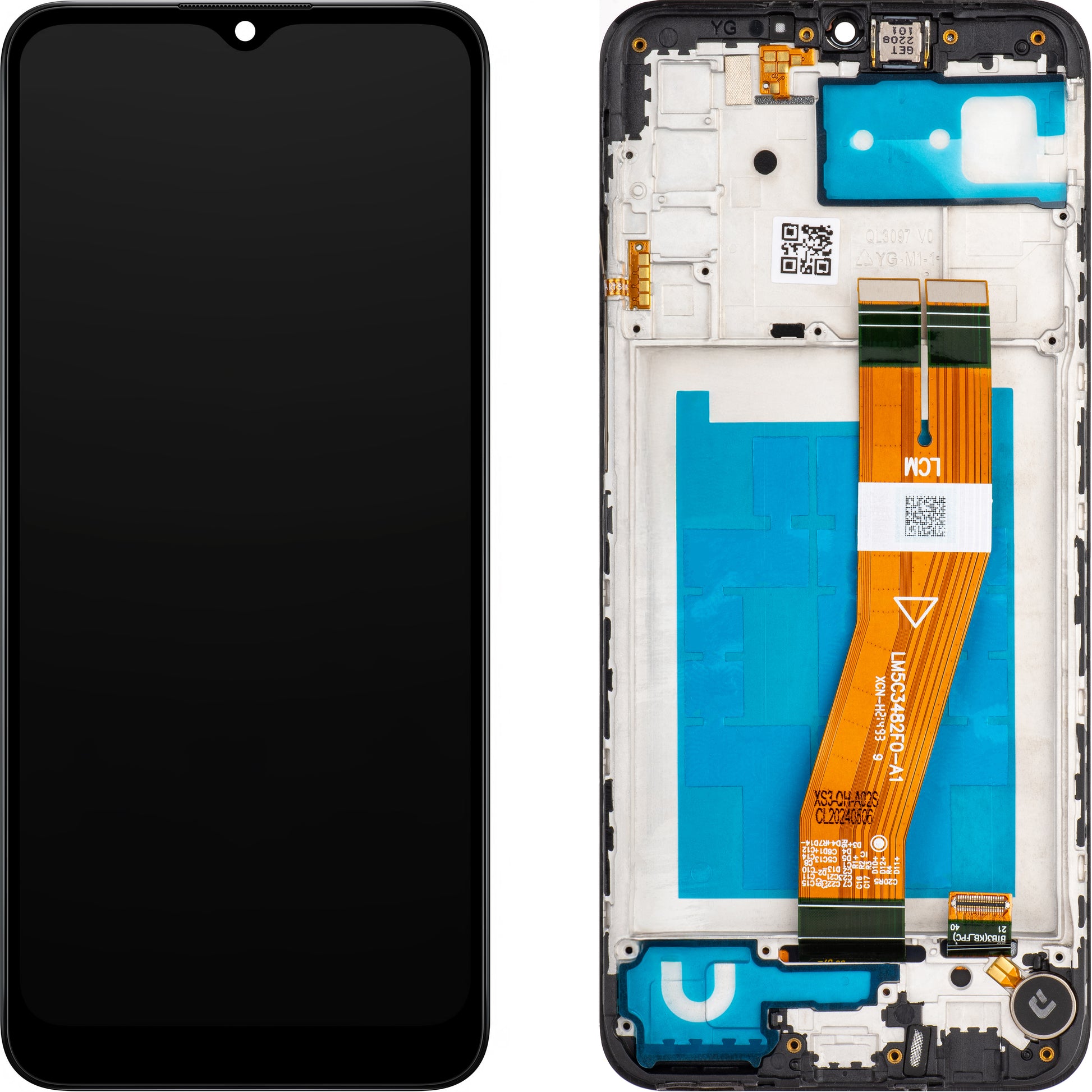 The display module is equipped with a bezel, speaker, vibrating motor and microcontact side buttons.