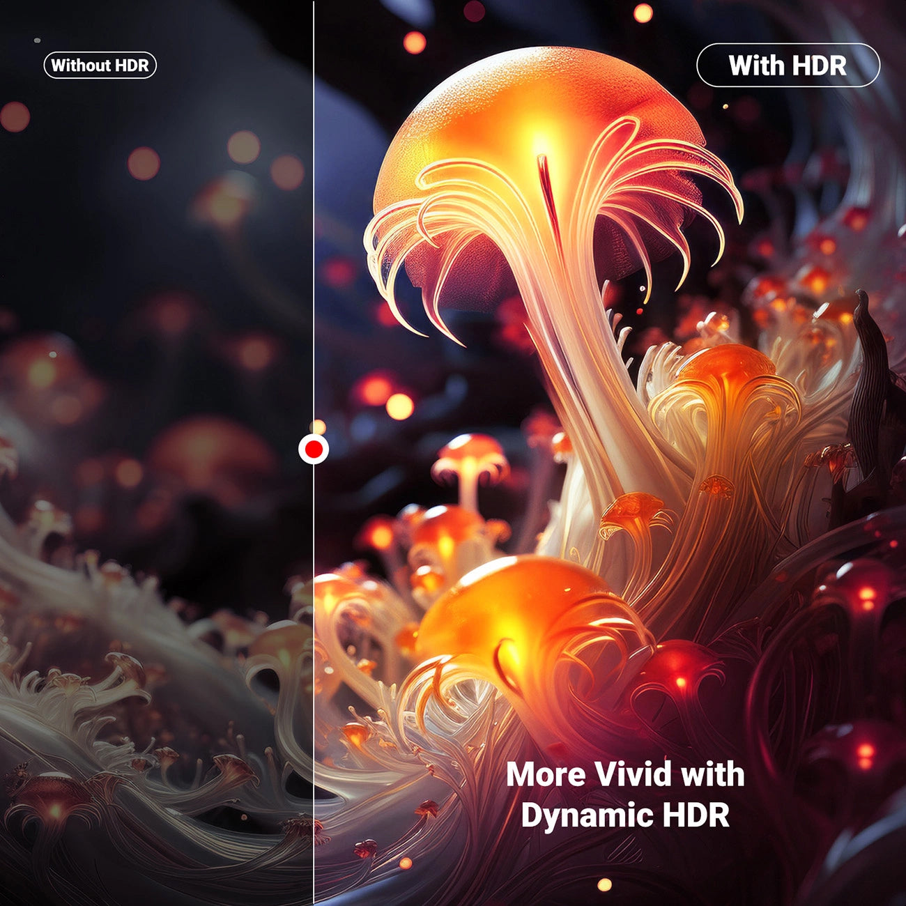 which guarantee a smooth experience, minimal response time, and automatic adaptation of the display mode. Additionally, Dynamic HDR offers vivid and natural colors,