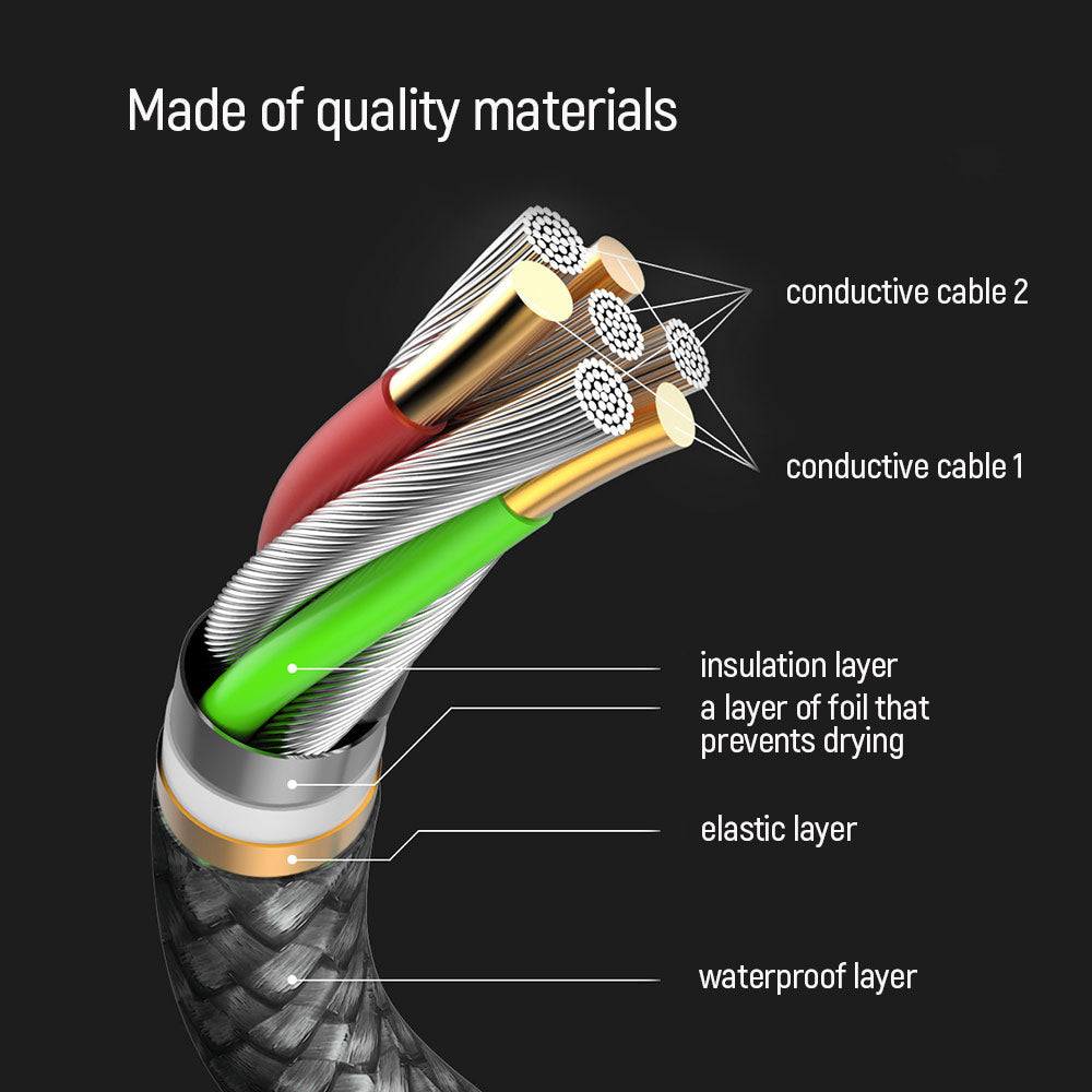the cable allows efficient charging with 18W, 20W, 25W, 30W, 65W, or 87W adapters. The durable fabric protects against wear,