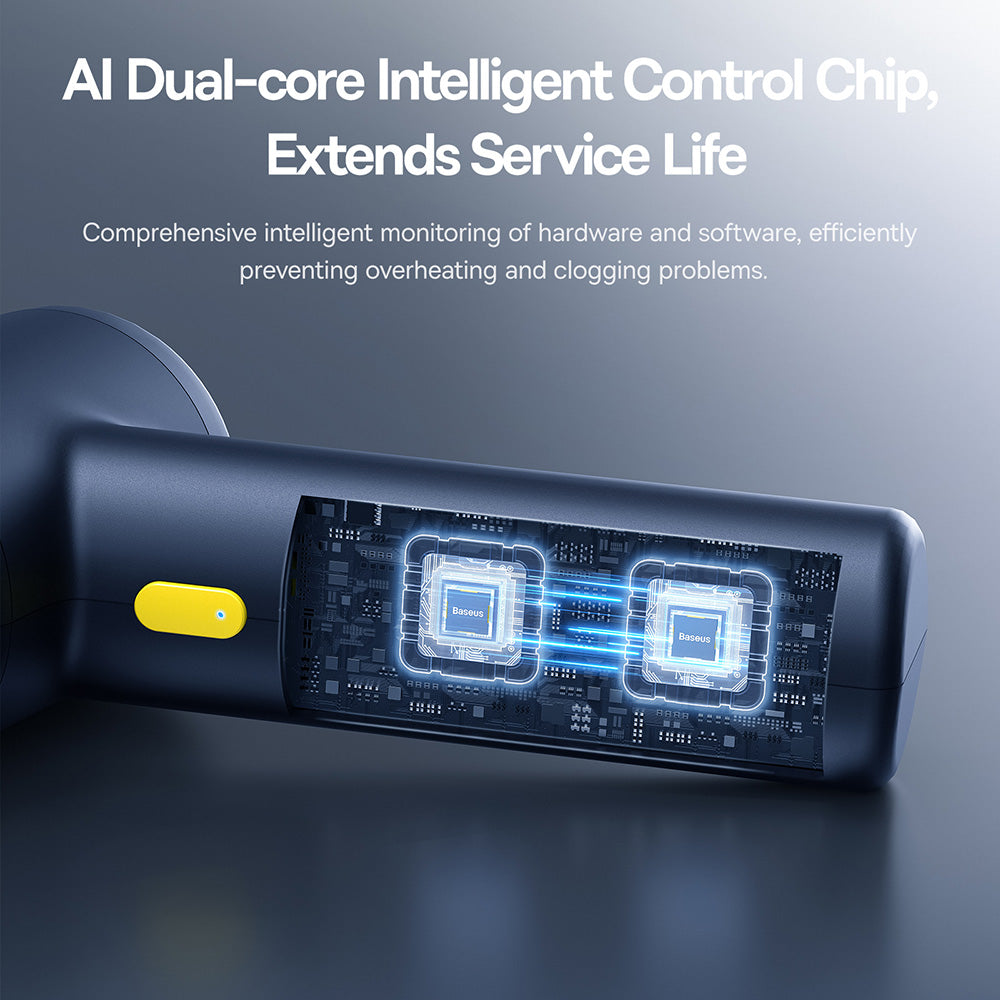 Почистете бързо и ефективно интериора на вашата кола с автомобилната прахосмукачка Baseus AT. Този преносим модел без кабел предлага впечатляваща смукателна мощност