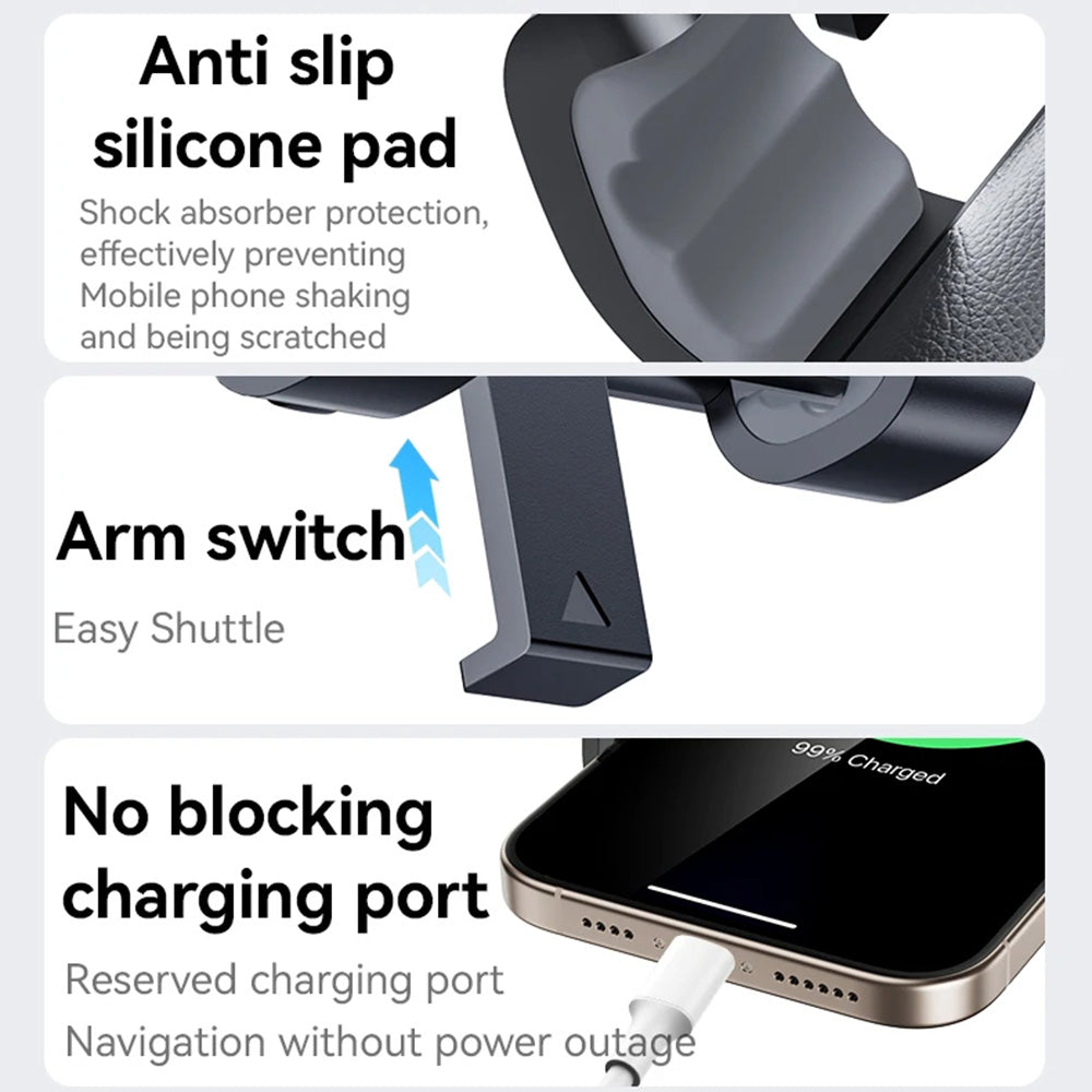 Със специална система за закрепване и премиум материали, тя осигурява безопасност, комфорт и гъвкавост при използване на телефона по време на шофиране. Благодарение на специално проектираната скоба за кръгли вентилационни отвори с вътрешен диаметър 40-70 мм и дълбочина над