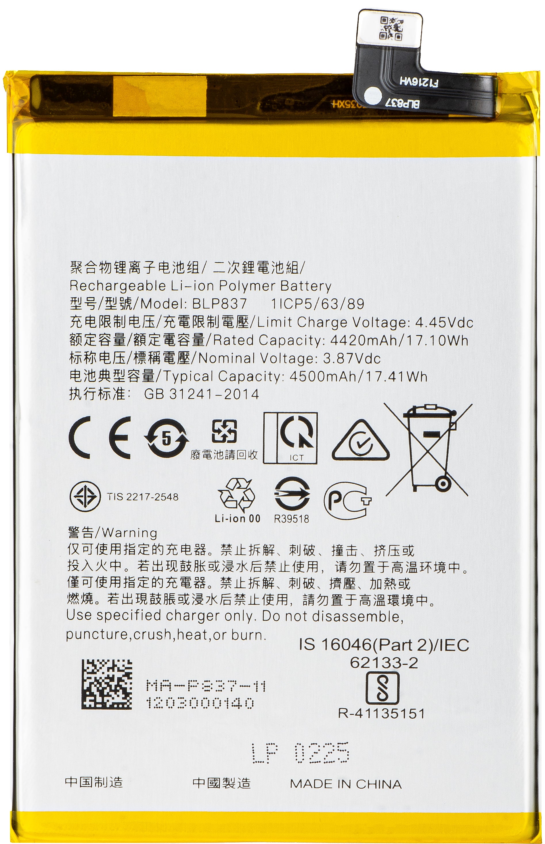 | Модел акумулатор | BLP837 |