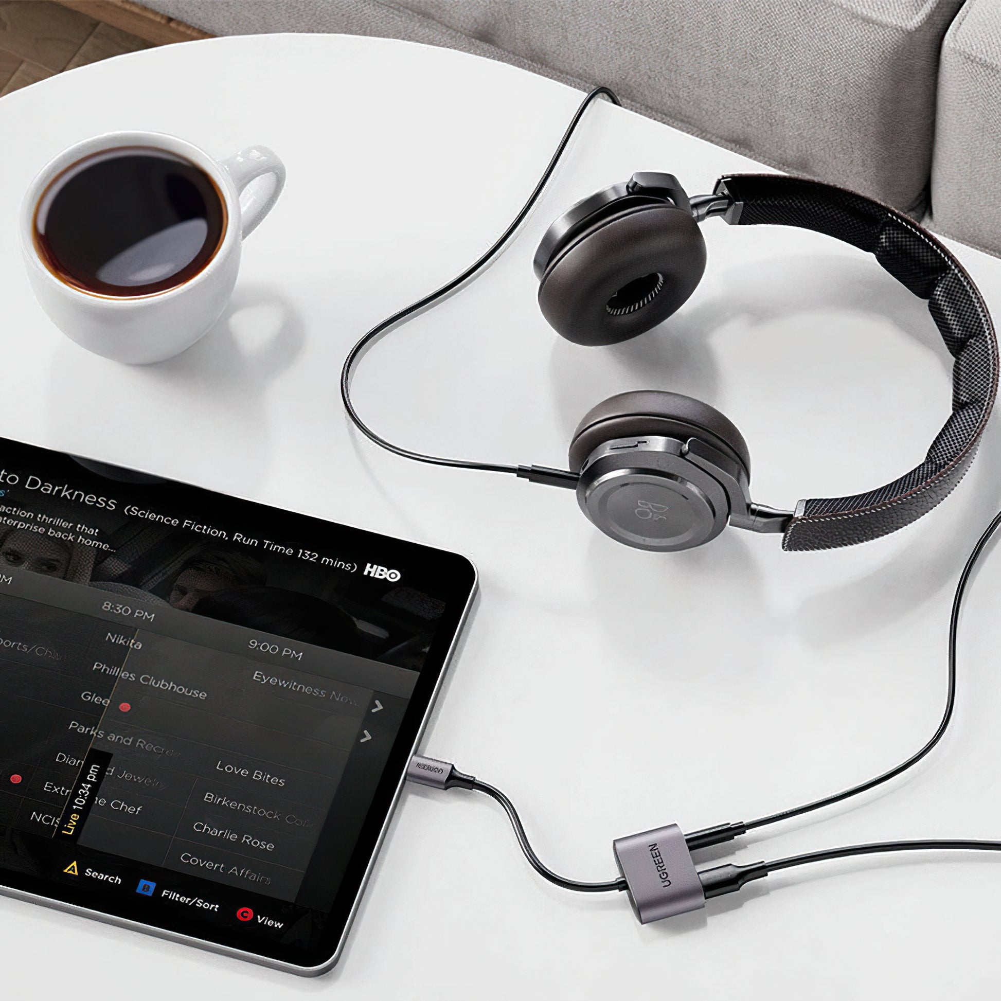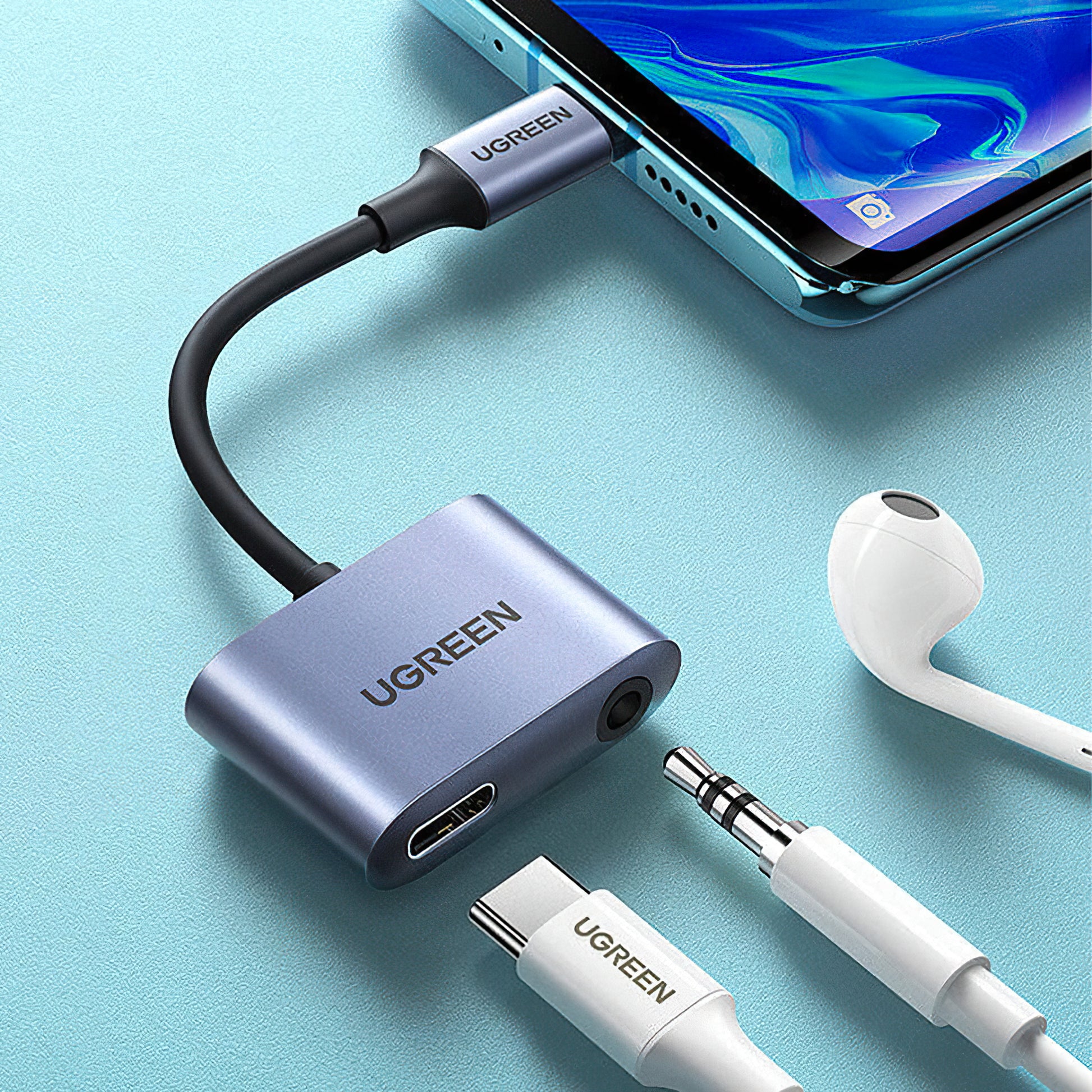 Аудио адаптерът USB-C към 3.5mm / USB-C UGREEN CM231 ти позволява да слушаш музика и да зареждаш телефона си едновременно.