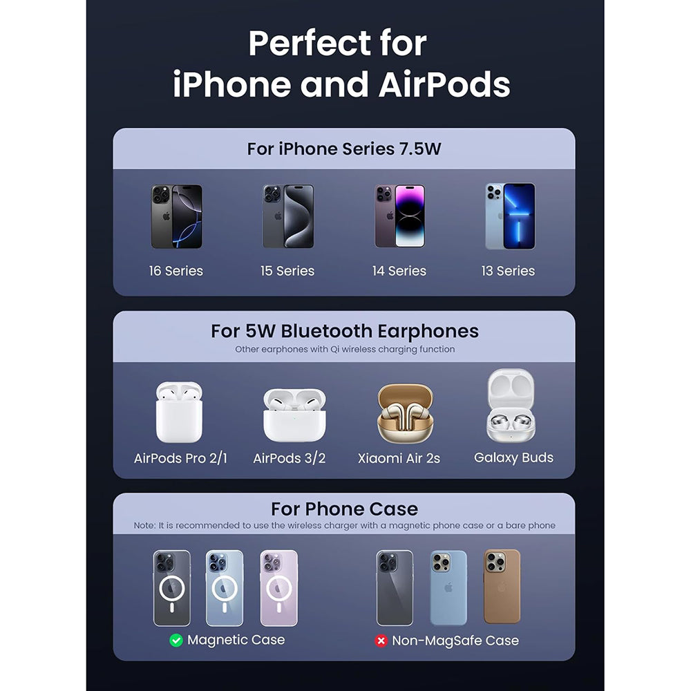 Безжичното зарядно устройство UGREEN W528 2in1 е идеалното решение за потребители, които искат бързо, сигурно и безжично зареждане.