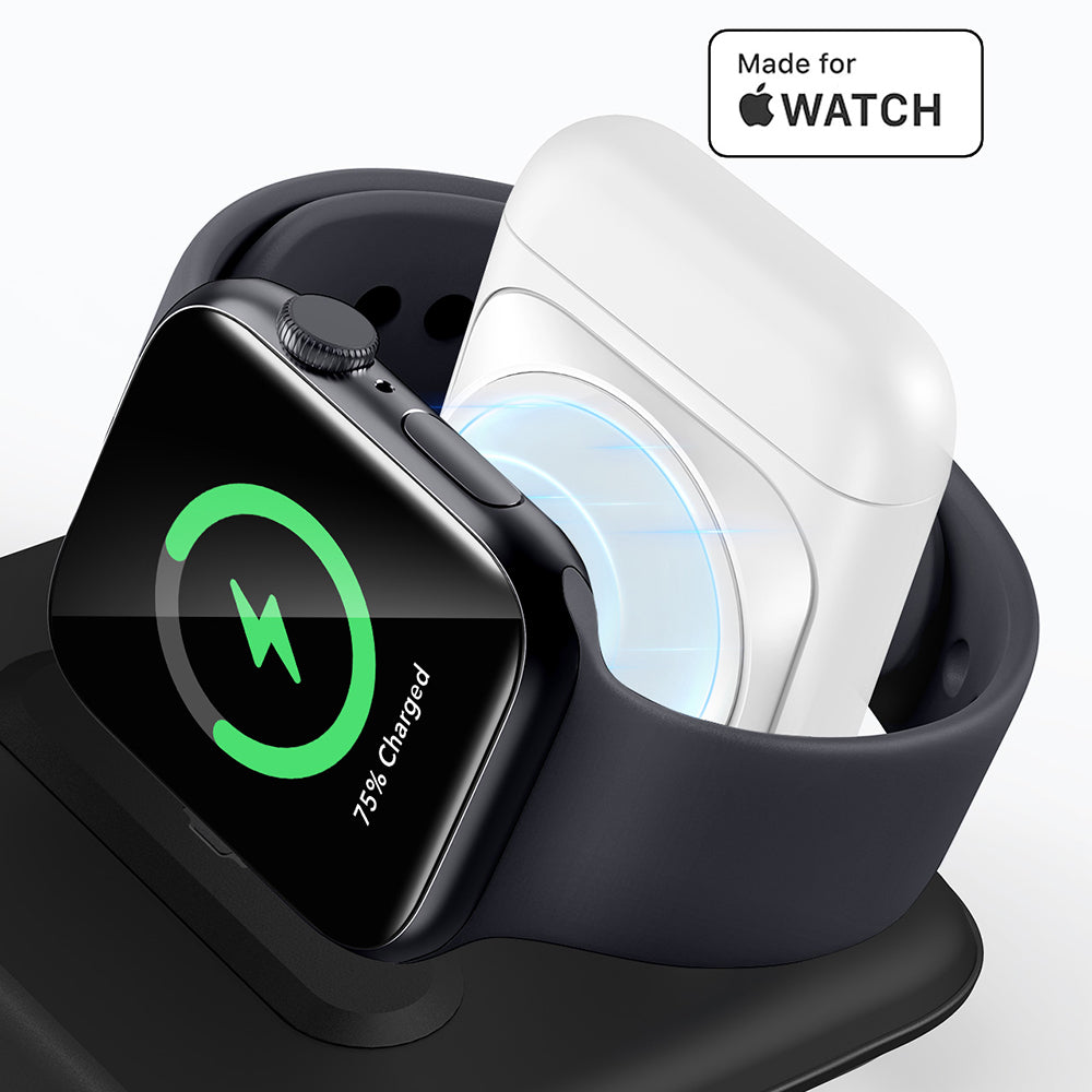• Зарядната станция 3 в 1 е незаменим партньор по време на пътуване и не само това. Благодарение на компактния и изобретателен дизайн, тя е лесна за транспортиране навсякъде по света.