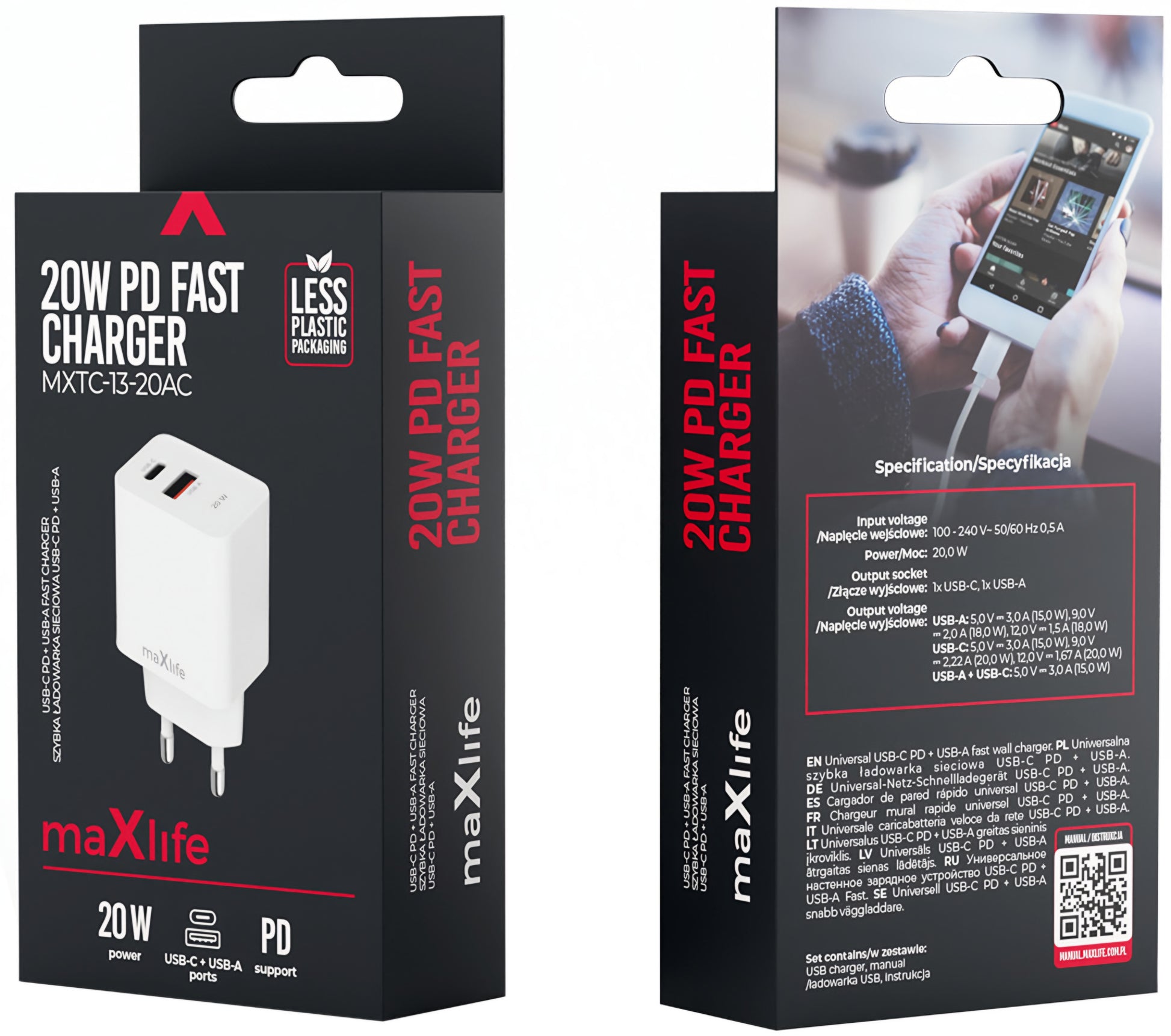 Зарядното устройство за мрежа MaXlife MXTC-13-20AC е универсалното решение за теб, ако искаш да зареждаш едновременно две устройства бързо и безопасно.