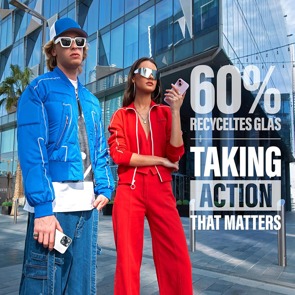 Фолиото е произведено от приблизително 60% рециклирано стъкло, обработено и пречистено, за да се запазят оптичните свойства на нивото на девственото стъкло.