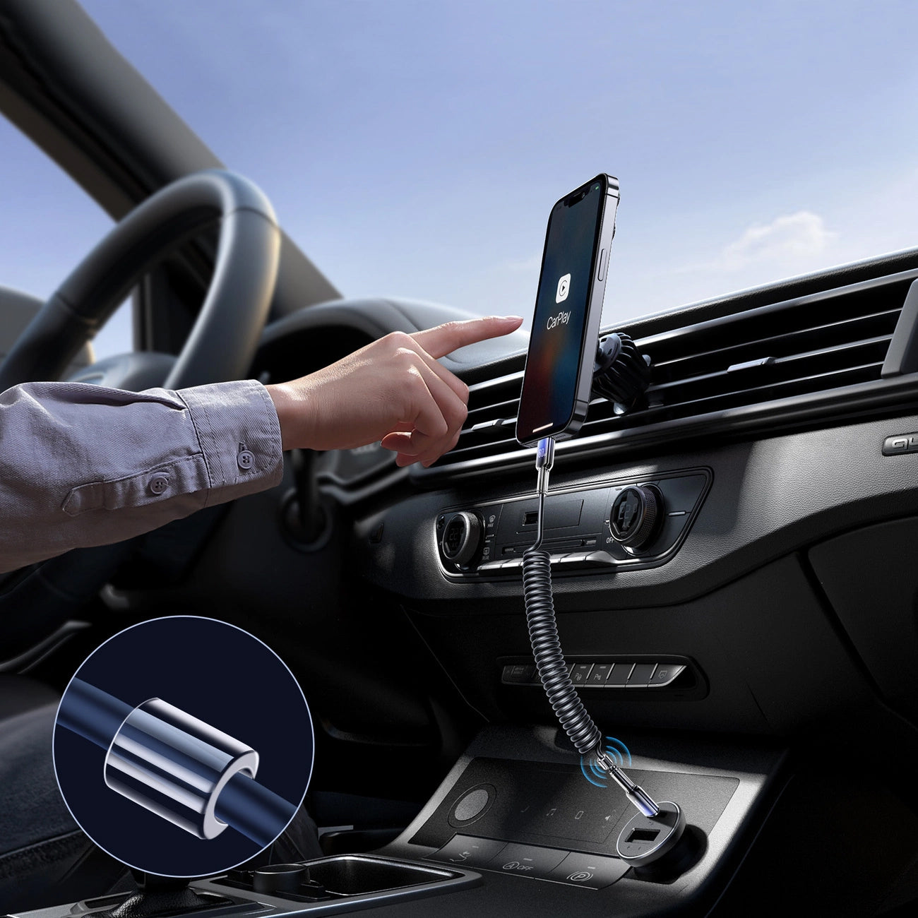 Освен това, е оборудван с магнитен пръстен, който елиминира електромагнитните смущения, осигурявайки стабилна и сигурна връзка, включително по време на използване на CarPlay.
