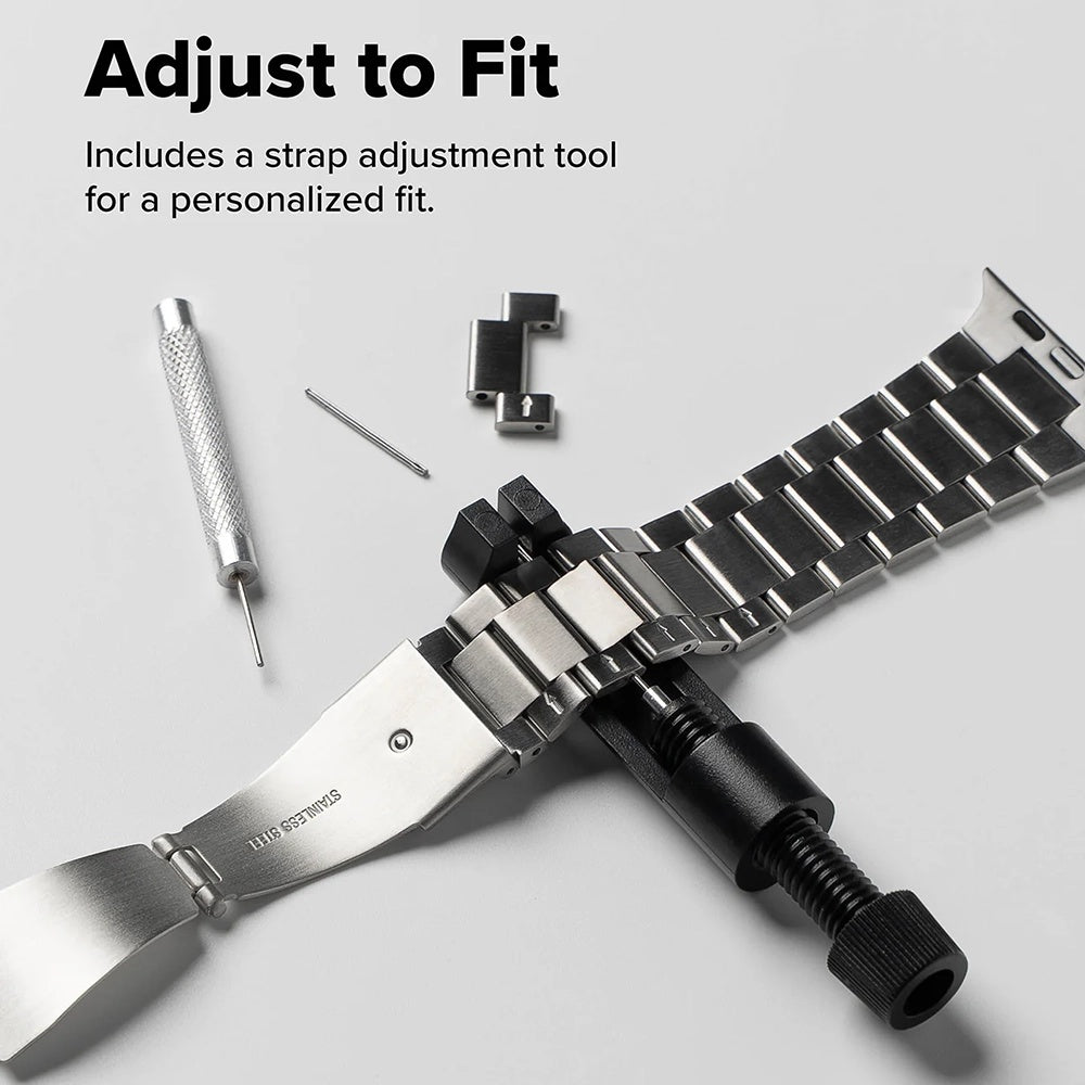Създадена от висококачествена неръждаема стомана, каишката забавя появата на следи от употреба, запазвайки своята естествена блясък във времето.