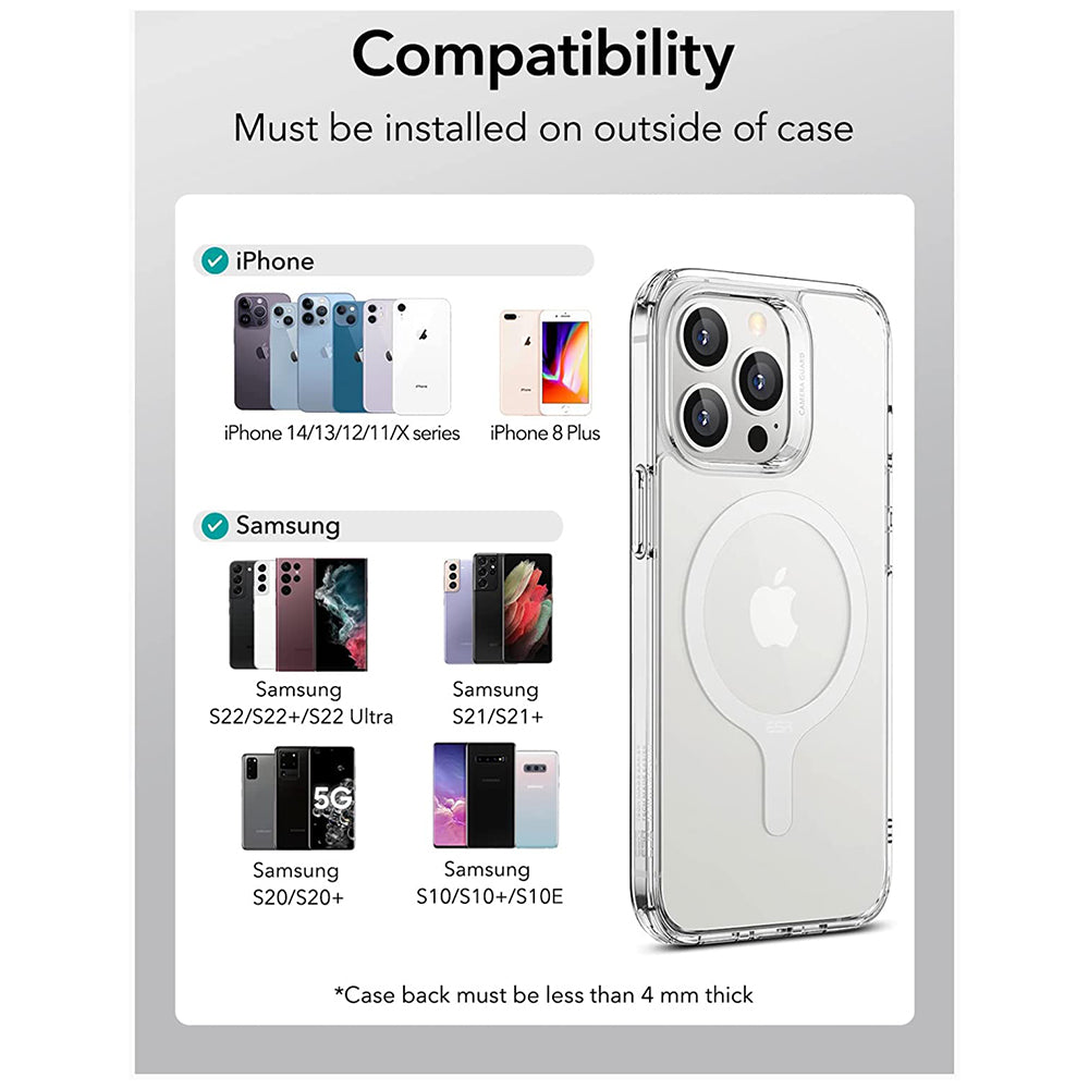 Комплектът съдържа два комплекта за монтаж на пръстена, така че да можеш да го позиционираш правилно. Всичко е толкова просто с новия адаптер HaloLock от ESR.