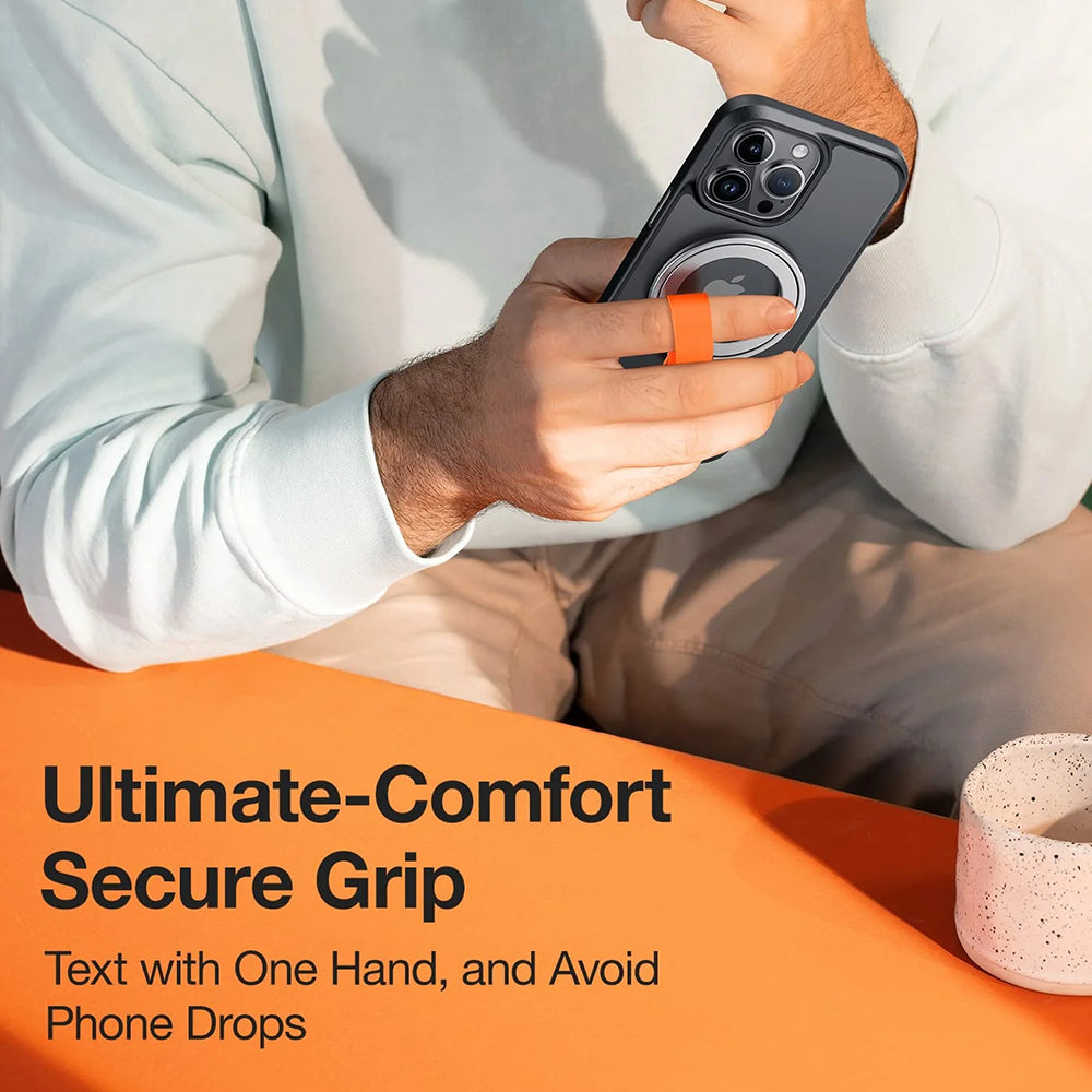 Torras Ostand Magnetic Ring използва магнитна система, съвместима с MagSafe, която здраво закрепва телефона и осигурява постоянна безопасност при ежедневна употреба.