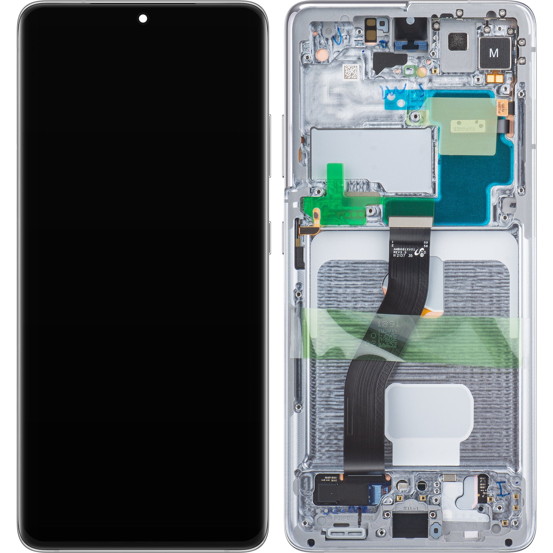 Сензорен дисплей Samsung Galaxy S21 Ultra 5G G998, с рамка, сребрист, сервизен пакет GH82-26035B